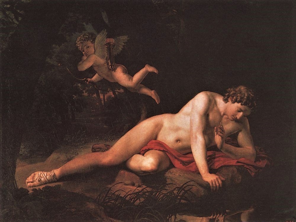Η Νέμεσις εκνευρισμένη με την εσωστρεφή συμπεριφορά του Νάρκισσου τον καταράστηκε να ερωτευτεί μόνο τον εαυτό του.